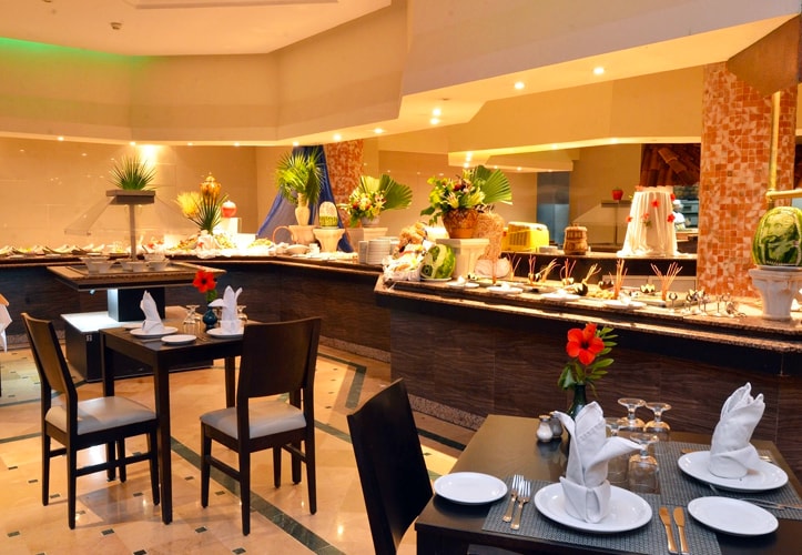 L’hôtel Hammamet Garden Resort et Spa dispose d’un restaurant thématique, table d’hôte « NEDRA » offrant des buffets Tunisiens, Italiens, Mexicains ou international, un restaurant barbecue « LES OLIVIERS » pour des grillades au bord de la piscine, un bar central « LES PALMIERS » situé au hall d’accueil avec une vue sur les mezzanines de l’hôtel sont décorés de jardins suspendus et de palmiers et le bar américain « CASABLANCA » dans une ambiance chaleureuse et festive. Un café Maure « ALI BABA» propose des cafés Turcs ou des thés à la menthe et une discothèque « LA BAMBA » pour les amoureux des fêtes et les couche-tard.